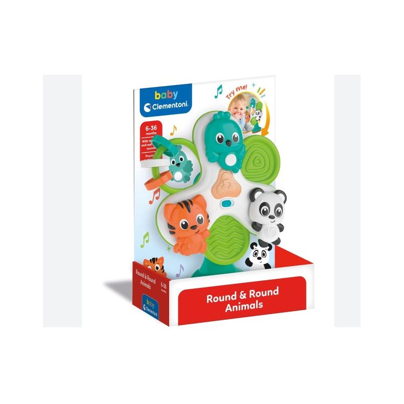 Un divertente girotondo degli animali per far divertire i più piccoli sul seggiolone e durante la pappa I 3 simpatici animaletti ruotano come in un girotondo e girano su se stessi Con 3 anellini e una piccola elica da far girare La ventosa sotto la base permette di fissare il gioco al piano del seggiolone in modo pratico e semplice Con tante melodie e simpatici suoni che faranno divertire il piccolo stimolandone i sensi e la coordinazione oculo manuale