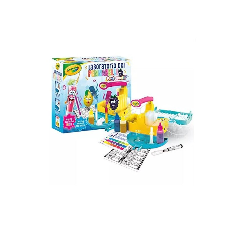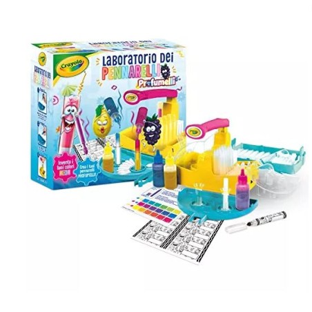 crea i tuoi pennarelli PROFUMATI e inventa i tuoi colori NEON proprio come un vero scienziato del colore SCATENA LA CREATIVITA crea fino a 14 pennarelli personalizzati mescolando gli inchiostri colorati molto facile da usare basta seguire la guida per creare colori sempre nuovi ANCORA PIU DIVERTIMENTO gli inchiostri sono profumati Magenta succo tropicale Giallo limone Blu lampone ATTIVITA CREATIVA E REGALO ottimo come regalo di compleanno o altre occasioni speciali puoi aggiungere la ricarica del laboratorio dei pennarelli per ancora più ore di infinito divertimento colorato INFORMAZIONI UTILI unità laboratorio Pennarelli 3 boccette inchiostro profumato 14 set per creare i pennarelli 2 tubi per misurare l inchiostro 2 fogli di etichette 1 pinzetta 1 guida