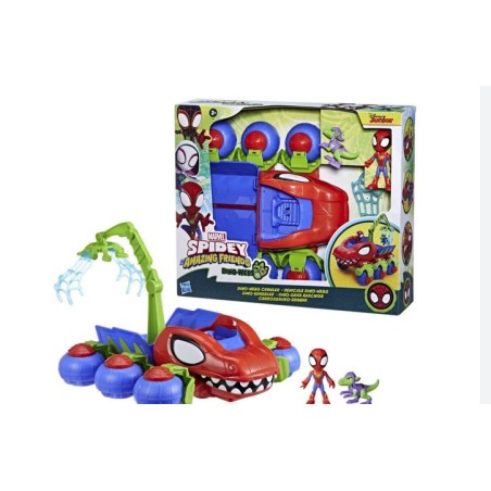Ispirato al nuovo contenuto della quarta stagione di Spidey e i Suoi Fantastici Amici Dino Webs introduciamo il Veicolo Dino Webs alto 20 cm Il Veicolo è dotato di un super artiglio per catturare i