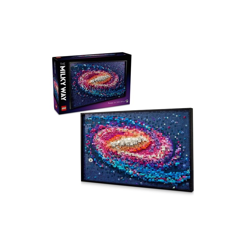 Arte murale con Via Lattea e Galassia preparati a creare un grande quadro LEGO per adulti con il kit di modellismo da costruire LEGO Art della Via Lattea