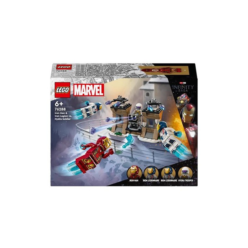 Il giocattolo d avventura costruibile Iron Man e Legione di ferro vs Soldato Hydra LEGO Marvel 76288 ricrea una scena di Avengers Age of Ultron dei Marvel Studios in cui Iron Man e 2 legionari volano verso la Base fortificata del Soldato dell Hydra Questo set di gioco con supereroi costruibile è ricco di fantastiche funzionalità e accessori che lo rendono un bel giocattolo costruibile per i bambini in particolare per i fan degli Avengers dai 6 anni in su