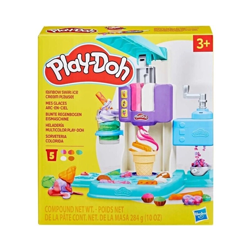 SET GELATO ARCOBALENO PLAY DOH realizza delle vorticose spirali multicolore di gelato finto con questa gelatiera Play Doh