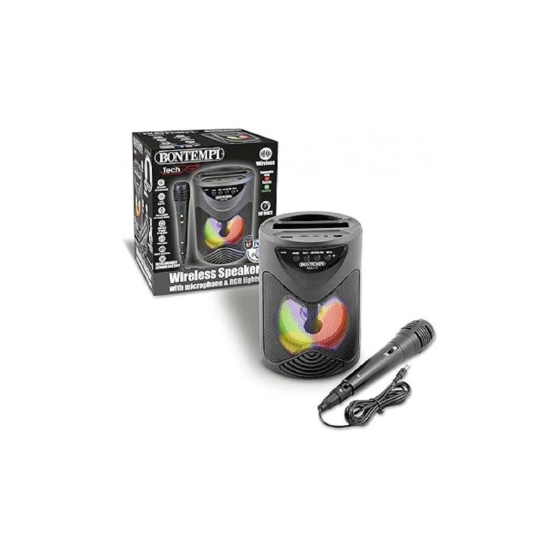 AMPLIFICATORE 50 WATT WIRELESS CON MICROFONO EFFETTI LUMINOSI ED ECO