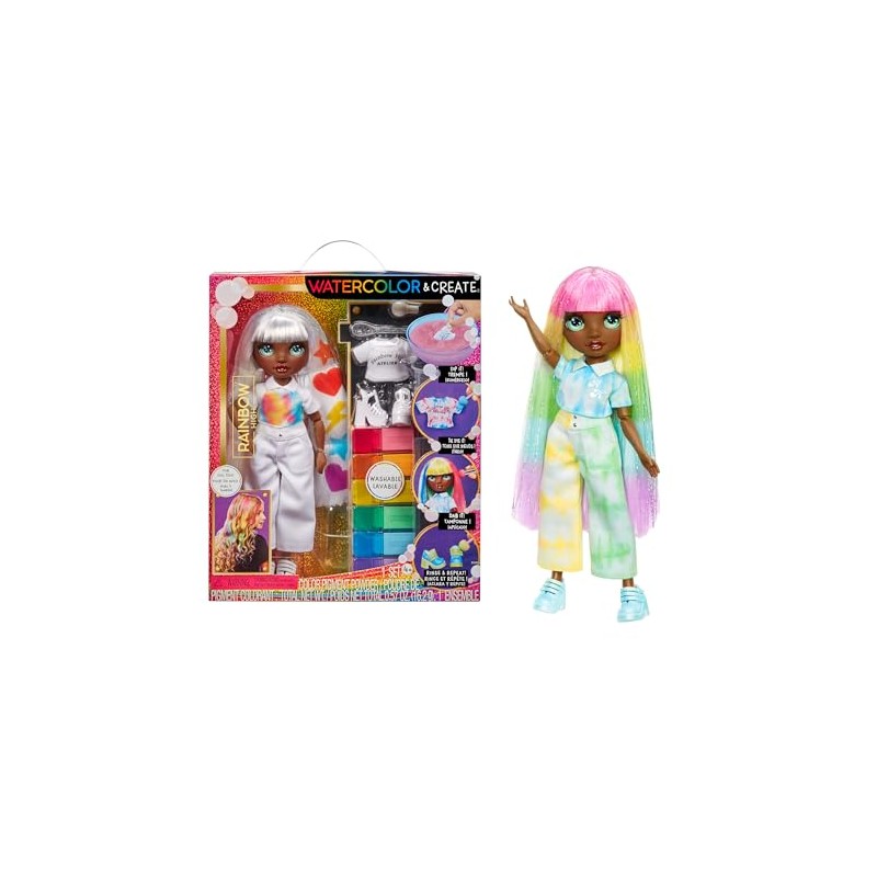 Arcobaleno Alto Acquerello e Crea Fashion FaiY Doll con Acquerelli Lavabile Kit Tie Dye Occhi Verdi Capelli Lunghi Eriti Bonus Top Scarpe Colore Crea Gioca Risciacquare e Ripeti Creativo 4 12