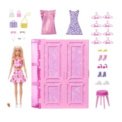 Questo Armadio dei Sogni di Barbie permetterà ai bambini di creare storie e stili infiniti per Barbie Apri il guardaroba rosa glitterato per scoprire un playset largo 91 centimetri con 2 appendiabiti oltre 20 scomparti una specchiera pieghevole con specchio a scomparsa uno specchio a figura intera e uno scaffale per le scarpe C è anche un cuscino per il cucciolo I bambini adoreranno vestire la bambola Barbie alla moda inclusa con oltre 25 vestiti e accessori come abiti scarpe collane e borse in abbondanza Scambia e abbina per creare 3 look completi per Barbie immergerti nella moda e inventare storie I bambini possono aiutare Barbie a scegliere un outfit sull appendiabiti a indossare abiti e accessori davanti allo specchio per poi finire di prepararsi alla specchiera prima di uscire con stile con il suo cucciolo per la migliore giornata di sempre Per riporli facilmente tutti i pezzi entrano nell armadio che ha un impugnatura rosa Barbie per potersi divertire ovunque La bambola non si regge in piedi da sola Colori e decorazioni possono variare