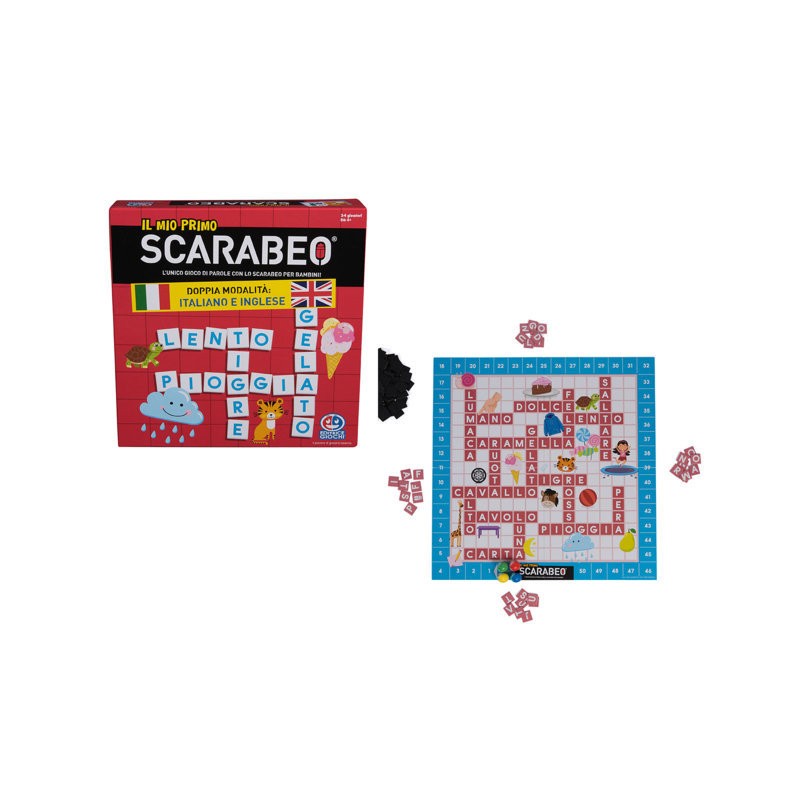 Riunisci i bambini per un gioco educativo e divertente Il mio primo scarabeo E' l inimitabile gioco di parole Scarabeo ma per BAMBINI Simile ai cruciverba questo gioco da tavolo insegna ai bambini a leggere Non può mancare nella tua collezione di giochi per le serate in famiglia E' molto semplice da imparare ma davvero stupendo Per 2 4 giocatori è pensato per i bambini dai 4 anni in su Non avrai bisogno di cercare altri giochi per una serata di divertimento Con Il mio primo scarabeo puoi giocare 2 modalità e imparare divertendoti nella modalità prescolare i bambini impareranno a riconoscere le lettere mentre nella modalità di gioco classica impareranno a scrivere le parole