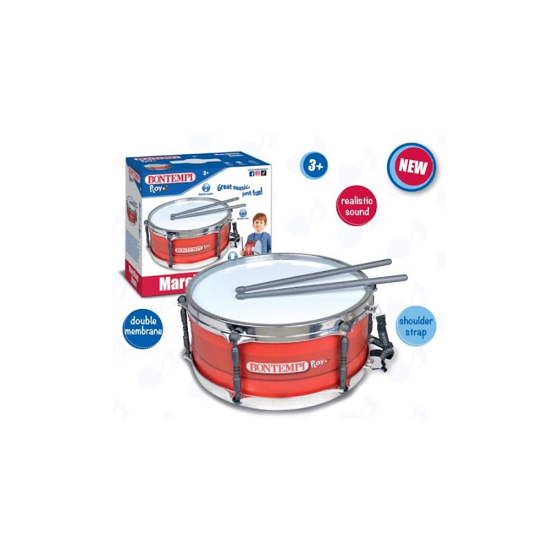 La musica è la sua passione Aiutalo a coltivarla Il Tamburo con Tracolla introdurrà il tuo bambino nel mondo della musica Con doppia membrana e 2 Bacchette Suono realistico Dim 250x2