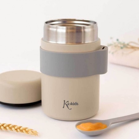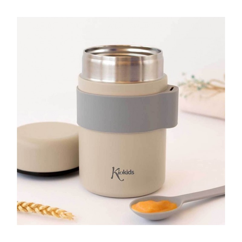 Questo thermos è ideale per trasportare porridge e puree Ha un cucchiaio incorporato che trattiene il bicchiere stesso grazie ad un cinturino in silicone In questo modo puoi portarlo dove vuoi e usarlo quando ne hai bisogno per dare da mangiare al tuo piccolo senza che si perda La sua capacità è di 500ml e mantiene la temperatura sia del caldo che del freddo per 12 ore grazie al suo interno in acciaio inox 304 con camera d aria e guarnizione ermetica in silicone Si consiglia per bambini da 0 mesi in su Lavare con acqua tiepida e sapone prima e dopo ogni utilizzo Lavabile in lavastoviglie solo cestello superiore Conservare aperto in un luogo pulito e asciutto Non adatto al microonde Non avvicinarsi a fonti di calore