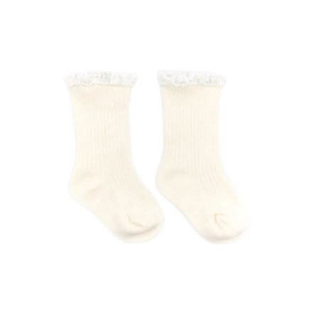 CALZA BIMBA CON PIZZO IN BAMBU 3 6 MESI COLORE PANNA 02