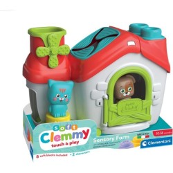 La fattoria sensoriale contiene al suo interno tanti morbidi Clemmy che possono essere impilati manipolati e inseriti facilmente nelle finestre e dal tetto
