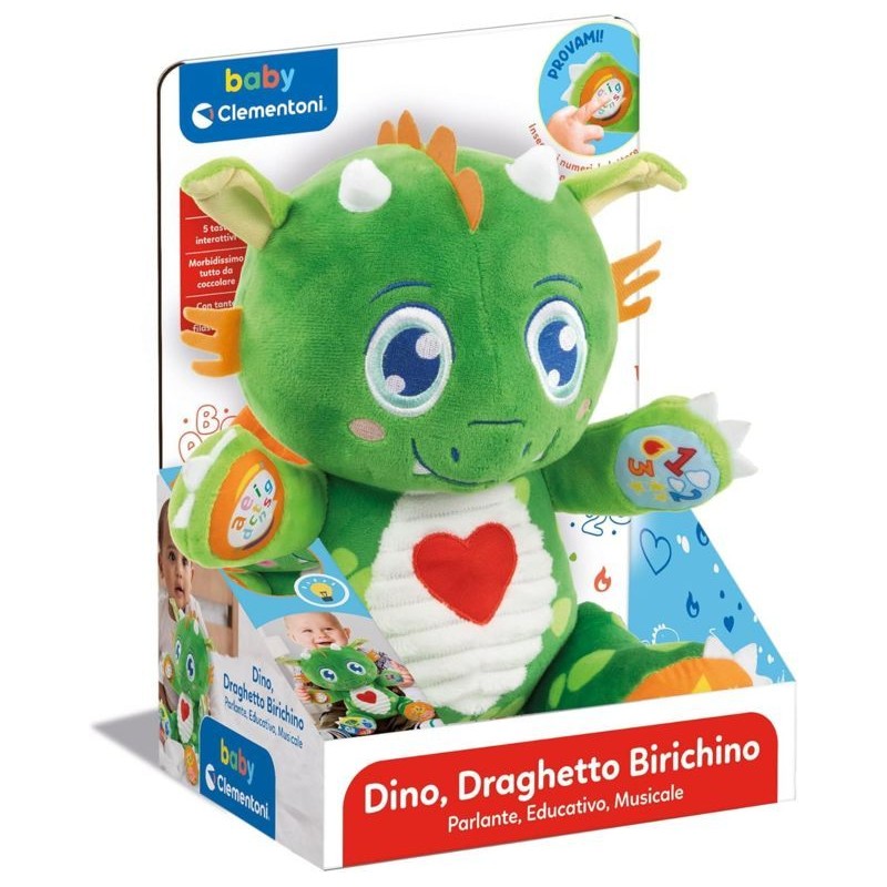 Questo tenero drago farà divertire i bambini con tanti effetti sonori e luminosi e li porterà alla scoperta di tanti contenuti educativi con canzoncine filastrocche e buffe frasi in un gioco allegro e coinvolgente