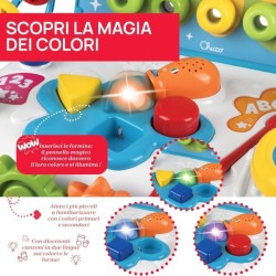 CENTRO ATTIVITA' ELETTRONICO Al centro del banchetto c è una tavolozza dei colori con un forme incastri Inserisci le 3 formine nei fori corretti e magia Il pennello si illumina del colore corrispondente e riconosce anche le combinazioni di colori