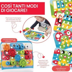 BOTTONCINI Divertiti con i 20 bottoncini colorati Impilali dividili per colore o inseriscili nei fori Ci sono così tanti modi di giocare Posiziona le schede sulla lavagna e completa i disegni inserendo i chiodini del colore corrispondente