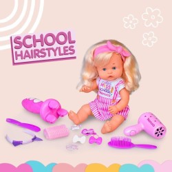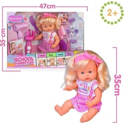 Nenuco School Hairstyle è una bambola di 35 cm con corpo rigido e lunghi capelli biondi perfetti per essere acconciati I bambini possono creare nuove acconciature per Nenuco una diversa per ogni giorno di scuola
