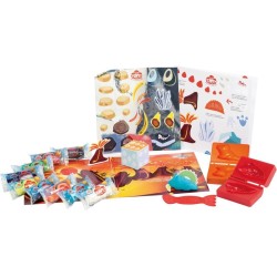 La confezione contiene 9 salsicciotti Didò 2 formine a cerniera 1 coltellino 1 dado 1 cartoncino con elementi pre fustellati 1 foglietto stickers 1 scenario doppio
