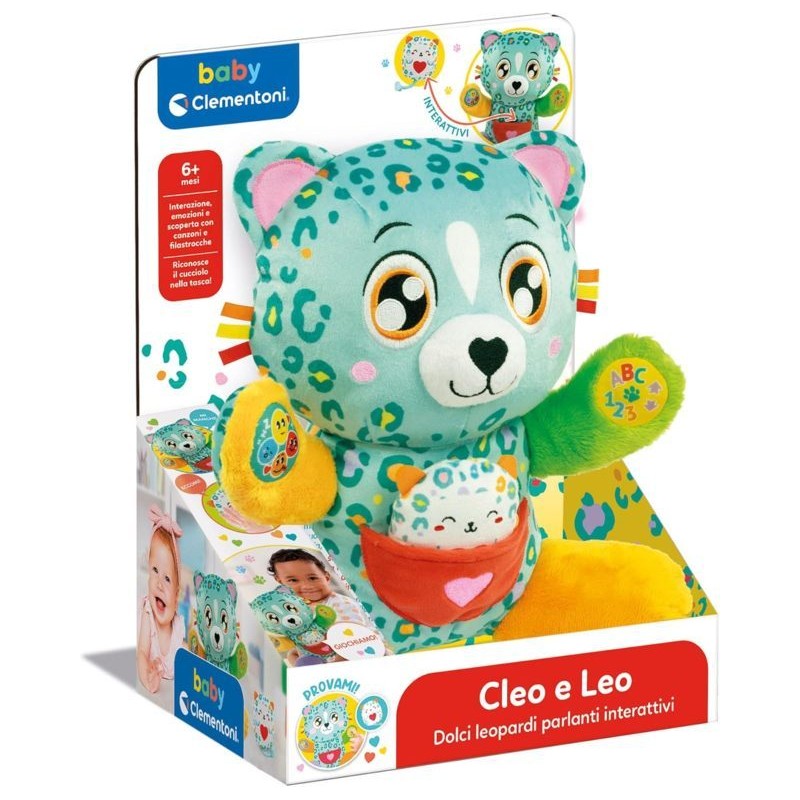 Con i due leopardini il bambino può giocare da solo o con i genitori immedesimandosi e sperimentando un primo gioco simbolico