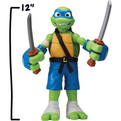 Leonardo in versione gigante da 30 cm con una funzione di combattimento attivabile spostandolo avanti e indietro potrai farlo sferrare potenti pugni roteando il busto per un esperienza di gioco dinamica e coinvolgente