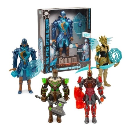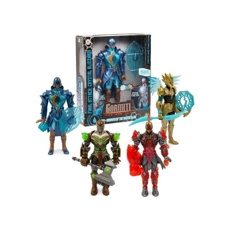 Action figure alte 27 cm articolate e raffiguranti i quattro Gormiti Il personaggio include un accessorio personalizzato che riproduce l arma del Gormita Il personaggio è dotato di una funzione attacco che replica la caratteristica mossa d attacco vista nella serie tv Inoltre possiede funzione luce che illumina punti specifici del corpo