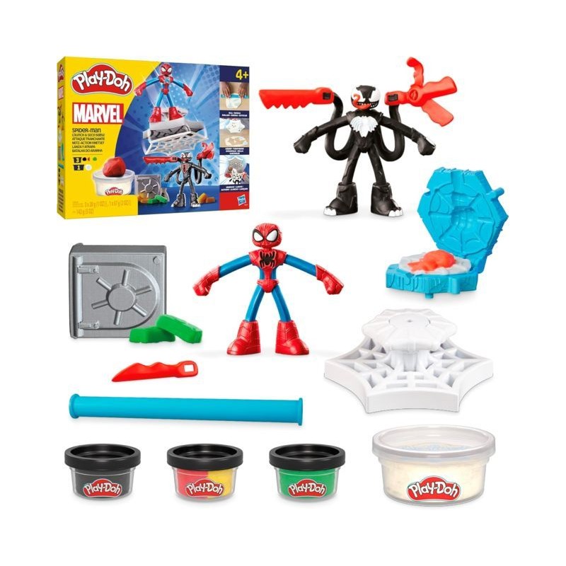 SET DA GIOCO SPIDER MAN VS VENOM Spider Man può impedire a Venom di compiere una finta rapina in banca Con questo set da gioco Play Doh il potere di narrazione delle storie è nelle mani di bambini e bambine