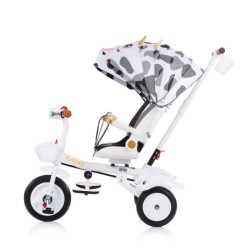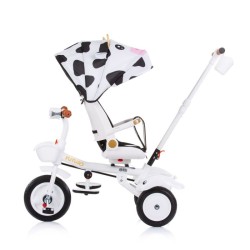 Quando il triciclo viene spinto da un adulto e il bambino appoggia i piedi sul poggiapiedi e i pedali della ruota anteriore sono disabili