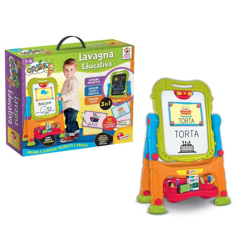 Una speciale lavagna da terra per fare tante attività educative Con la speciale scuola di scrittura imparerai a scrivere tante paroline E in più gessi e penna cancellabile per scrivere e disegnare età da 3 anni