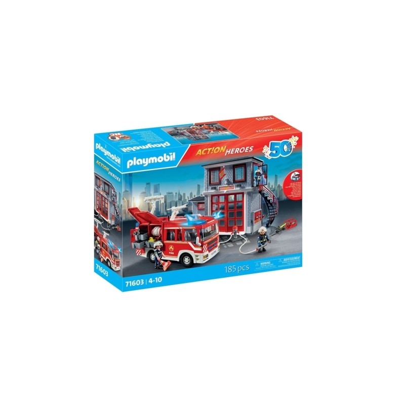 Attrezzatura Versatile Il set comprende una caserma dei vigili del fuoco con scivolo un centro operativo con scrivania elementi per tubi e un verricello con uno strumento di soccorso Ora riproposto in occasione del 50 anniversario di PLAYMOBIL
