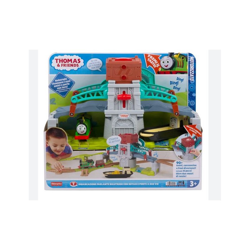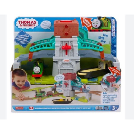 Azione controllata dai bambini Solleva e abbassa il ponte fai sfrecciare la locomotiva motorizzata Percy sulla pista carica e scarica manualmente il carico e altro ancora