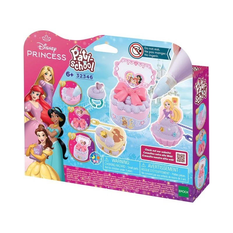 Il kit per creazioni delle Principesse Disney viene fornito completo di pasta color lavanda Pati school decorazioni di carta ispirate alle Principesse Disney e 4 diverse basi a ispirate ai dolcetti che possono essere utilizzate come segnaposto anello e portachiavi