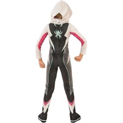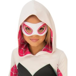 TUTA questo incredibile costume di Spider Gwen include una tuta con cappuccio fisso con dettagli stampati in nero e rosa con copristivali e maschera per gli occhi Chiusura posteriore per indossarla facilmente
