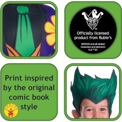 Il costume Joker include tuta stampata con copertine allegate e fiore dei cartoni animati insieme a copricapo verde