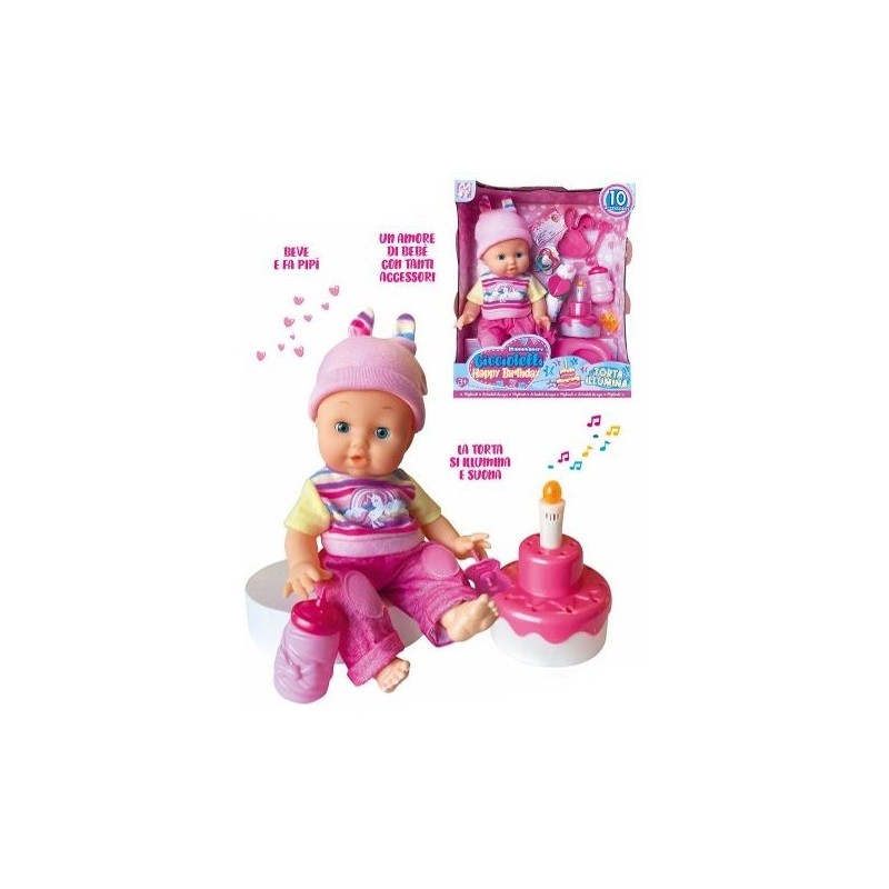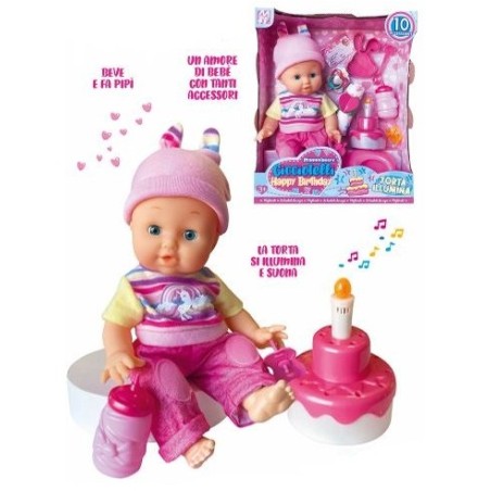 CICCIOTTELLO HAPPY BIRTHDAY BEVE E FA PIPI Dolce bebè con torta luminosa con canzone e tanti accesori
