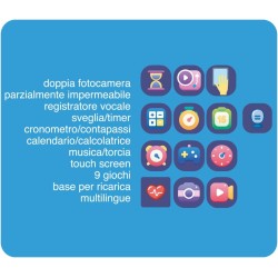 SMARTWATCH MULTIFUNZIONE smartwatch touchscreen dotato di ben 9 giochi e funzioni tra cui cronometro contapassi calendario calcolatrice registratore vocale