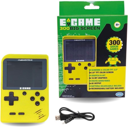 CONTENUTO DELLA CONFEZIONE La confezione include la console Egame 300 Big Screen la batteria al Litio ricaricabile Adatto per bambini dai 8 anni in su