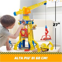 TORRE DEL CANTIERE DI RUBBLE CREW la torre è alta 60 centimetri è dotata di luci e suoni una gru funzionante girevole con accessorio a tenaglia un area per modellare la sabbia un ascensore e mo