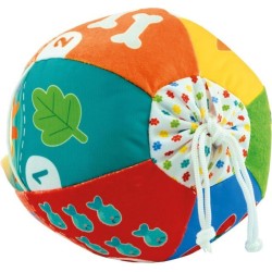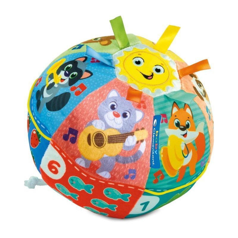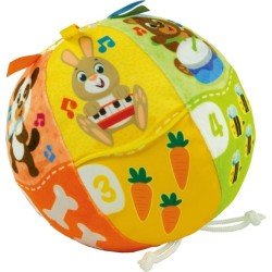 Una morbida palla elettronica con modulo estraibile Agitando la palla il bambino conoscerà gli animali gli strumenti i numeri e e il nome degli oggetti disegnati
