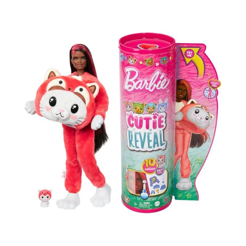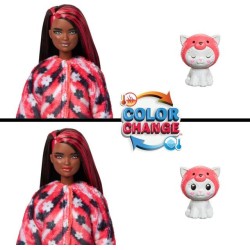 Queste fantastiche bambole della serie Barbie Cutie Reveal offrono una fantastica esperienza quando si apre la scatola perchè soltanto in quel momento scoprirai la bambola ed i suoi fantastici accessori tra morbidi amici di peluche accessori alla moda e divertenti trasformazioni Apri i 4 sacchettini a sorpresa per trovare abiti e accessori come una gonna un paio di stivali una borsetta a forma di koala un pettine e un adorabile cucciolo coordinato Trasforma il viso della tua bambola grazie all effetto dell acqua calda o fredda I bambini e le bambine potranno giocare con i vestiti e gli accessori della bambola Barbie trasformando la parte superiore del costume in una giacca di pile super morbida decorata con una stampa alla moda La testa del costume si trasforma invece in un lettino per l amico a 4 zampe Le bambole Barbie Cutie Reveal sono un regalo fantastico per bambini e bambine da 3 a 7 anni soprattutto se amano scoprire graziose sorprese