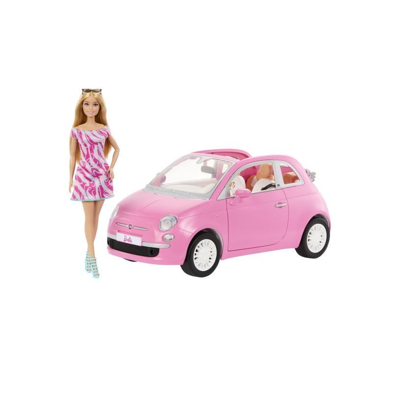 Parti per l avventura con Barbie e la sua tenerissima macchinina rosa Fiat 500