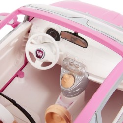 L esterno rosa le targhe di Barbie e gli stemmi della Fiat 500 conferiscono stile distintivo e dettagli realistici al gioco