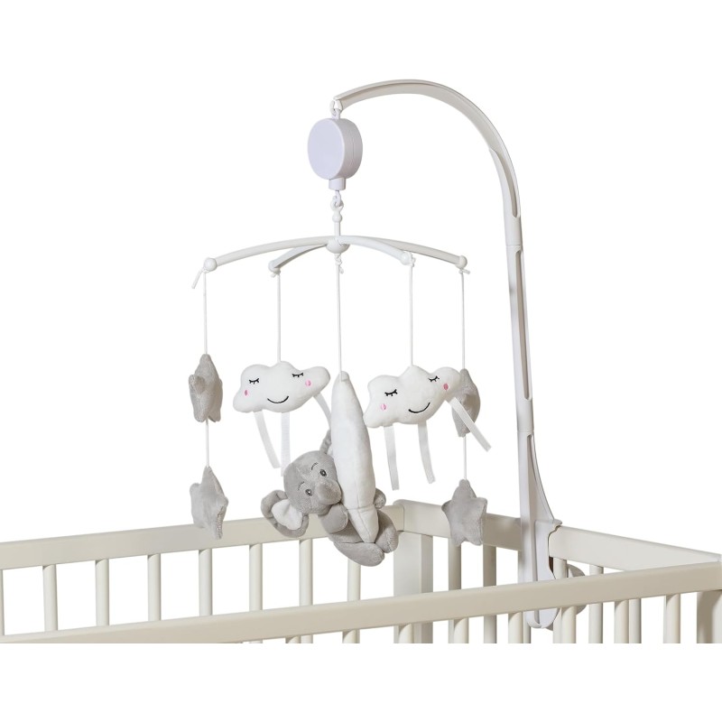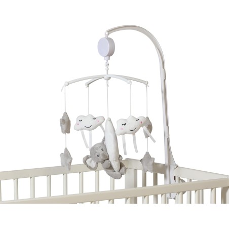 L elefante le nuvole e le stelle ruotano molto lentamente sul nostro lettino con una ninna nanna per rilassare il bambino
