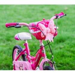 ALTA QUALITA RICCA DI ACCESSORI la bicicletta bambini 4 6 anni 16 pollici Disney nella versione Luxury è dotata di Telaio hi ten con accesso agevolato Forcella hi ten Freni caliper Leva freno nylon Cerchi in alluminio Piega manubrio hi ten Reggisella hi ten regolabile Ruote tassellate con camera d aria Allestimento frontalino catadiottri campanello stabilizzatori laterali borsetta porta borsetta con fiocco Minnie