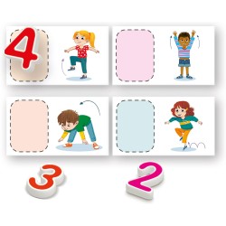 E per giocare in movimento tante carte che invitano il bambino a mimare con il corpo le lettere o a fare piccoli esercizi mentre conta