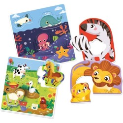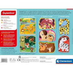 3 Animali e texture propone grandi tessere sagomate di animali con tasselli a incastro per ricostruirne la pelliccia