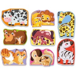 1 Genitori e cuccioli sono quadretti con coppie di animali sagomati da incastrare