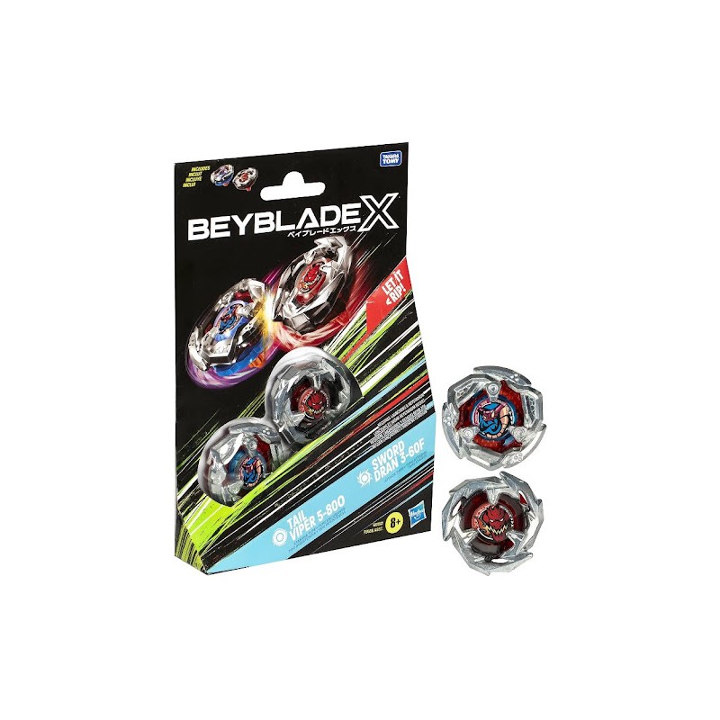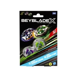 Scoprite la nuova generazione Beyblade X con il Dual Pack che include 2 trottole per arricchire ancora di più la vostra collezione di Beyblade Beystadium o Battle Set e lanciatori necessari vendut