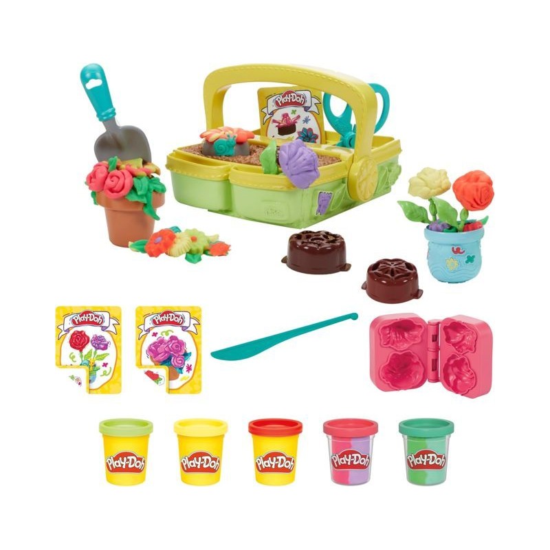 DIVERTENTE DA CREARE E FACILE DA RIPORRE aggiungi la pasta modellabile Play Doh e premi la maniglia per far crescere i fiori di Play Doh nella scatola del giardino poi usala per trasportare e riporre gli strumenti