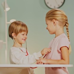 I piccoli fan della medicina trovano particolarmente bello il fatto di poter ascoltare con lo stetoscopio il battito del cuore e il suono del respiro