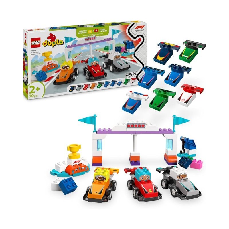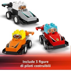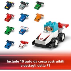 Macchina giocattolo F1 da costruire per bambini e bambine da 2 anni il set di giochi didattici LEGO DUPLO Auto da Corsa e Piloti Team F1 porta il tuo giovane pilota nel mondo della Formula 1 e del divertimento delle corse con le macchine