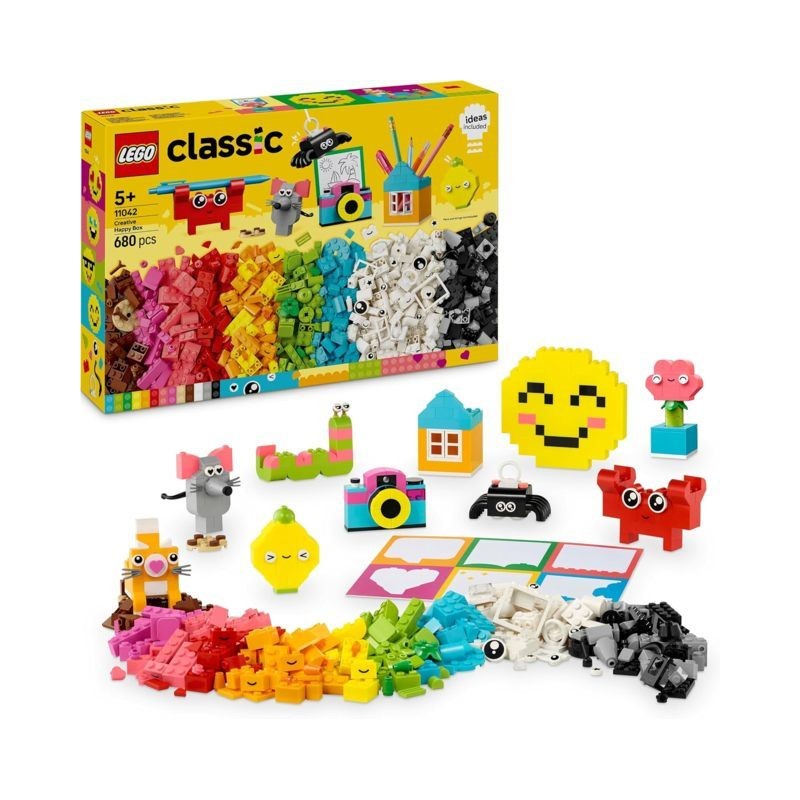 Scatola LEGO con costruzioni assortite include idee per 10 modelli rapidi da costruire ciascuno progettato per ispirare la felicità e che possono essere ricostruiti in 12 nuovi giocattoli e ulteriormente personalizzati in altre creazioni
