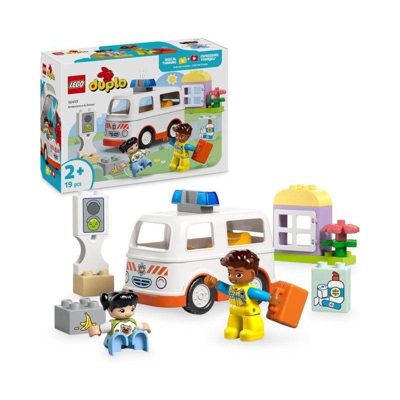 Gioco di fantasia per bambini e bambine da 2 anni in su i piccoli ricreano emozionanti scene di soccorso della vita reale con il gioco didattico Ambulanza e Autista LEGO DUPLO che include un ambulanza giocattolo e una piccola casa