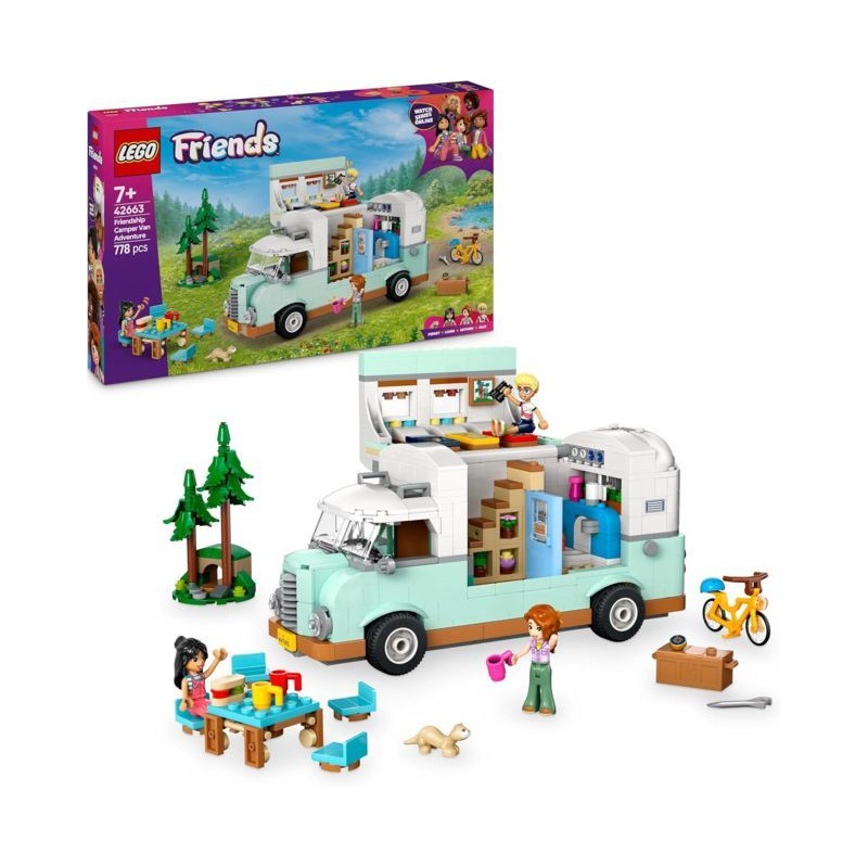 Camper giocattolo da campeggio questo gioco di ruolo per bambine e bambini da 7 anni in su Avventura sul Camper dell Amicizia su contiene 3 mini bamboline LEGO Friends e un furetto per i piccoli che amano raccontare storie di amicizia creative